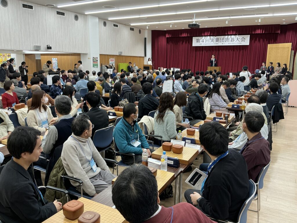 すっかり恒例になりました「実業団囲碁大会」が11月22日に、日本棋院本院にて催されました。40社59チームが8クラスに分かれて、3試合打ちます。対戦前に名刺交換が行われる姿を見るところが、ふつうの大会との違いでしょうか。
