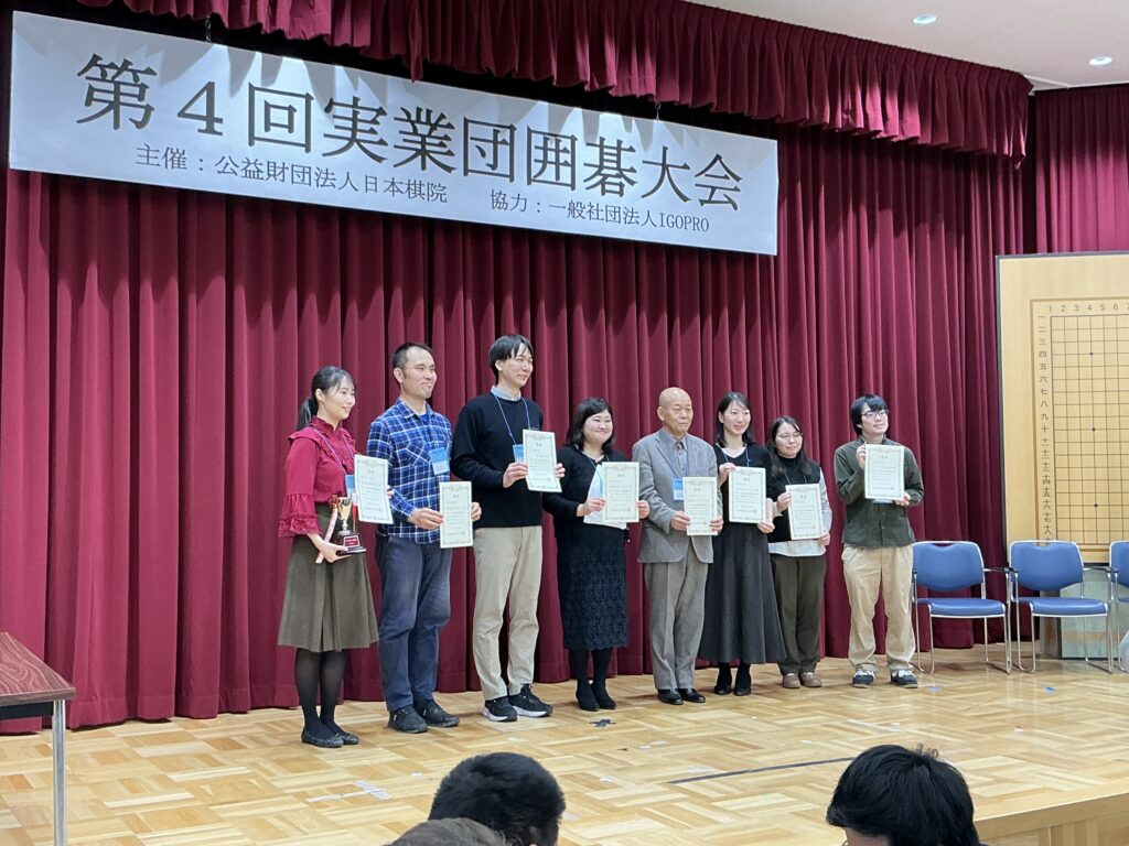 A~Fクラスは棋力別ハンディ戦ですが、無差別クラスはオール互い先。優勝は3年連続富士通Uvanceチーム。主将から3将の3人同じメンバーで勝ち続けているのですからすごいですね。富士通はAクラスも優勝しています。会社あげて囲碁に力を入れていることがわかります。