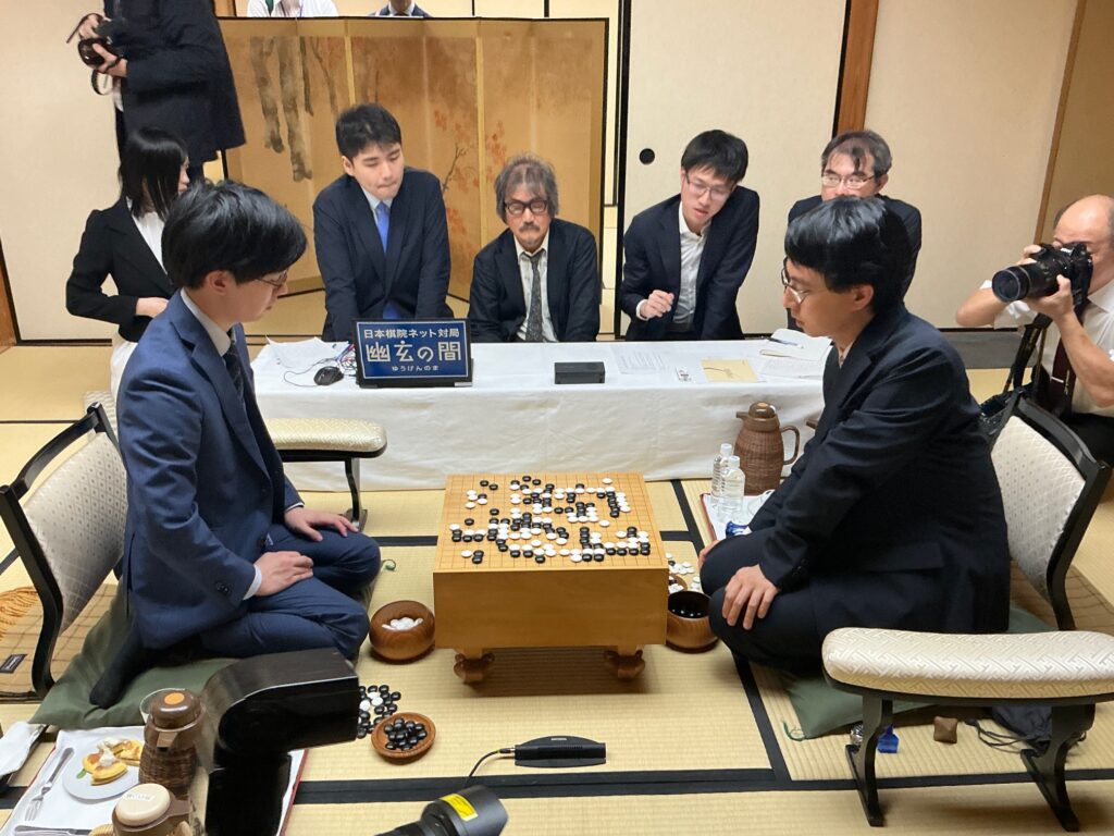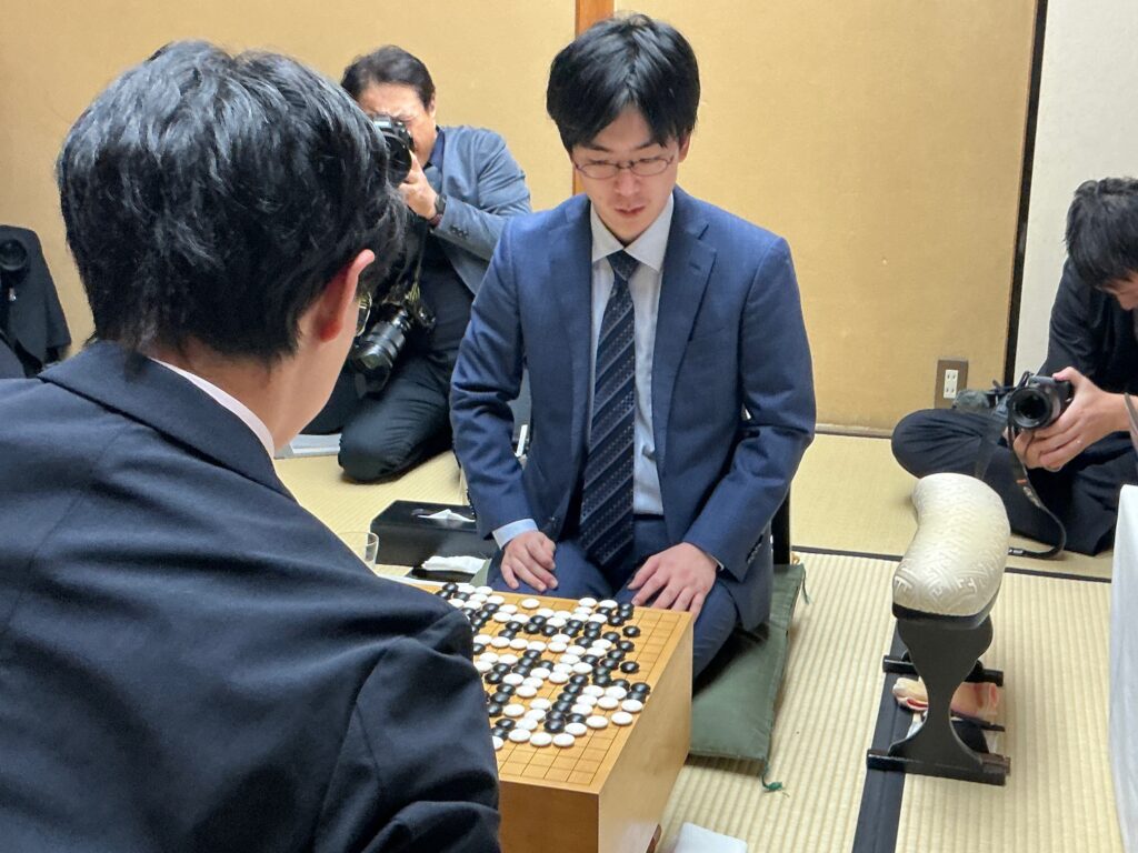 盤上は、先に一力名人が陣地を稼ぎますが、ふたつの弱い石を芝野十段にうまく攻められます。リードしていた陣地でも追い抜かれ僅差の勝負となりましたが、最後は勝ちがないと名人が投了しました。最後、計算していたら1目半ほどの差だったといいます。